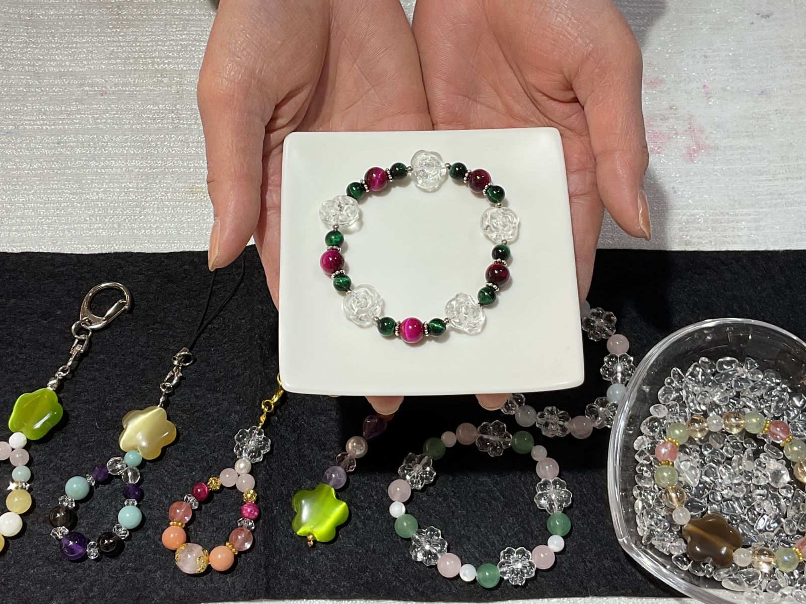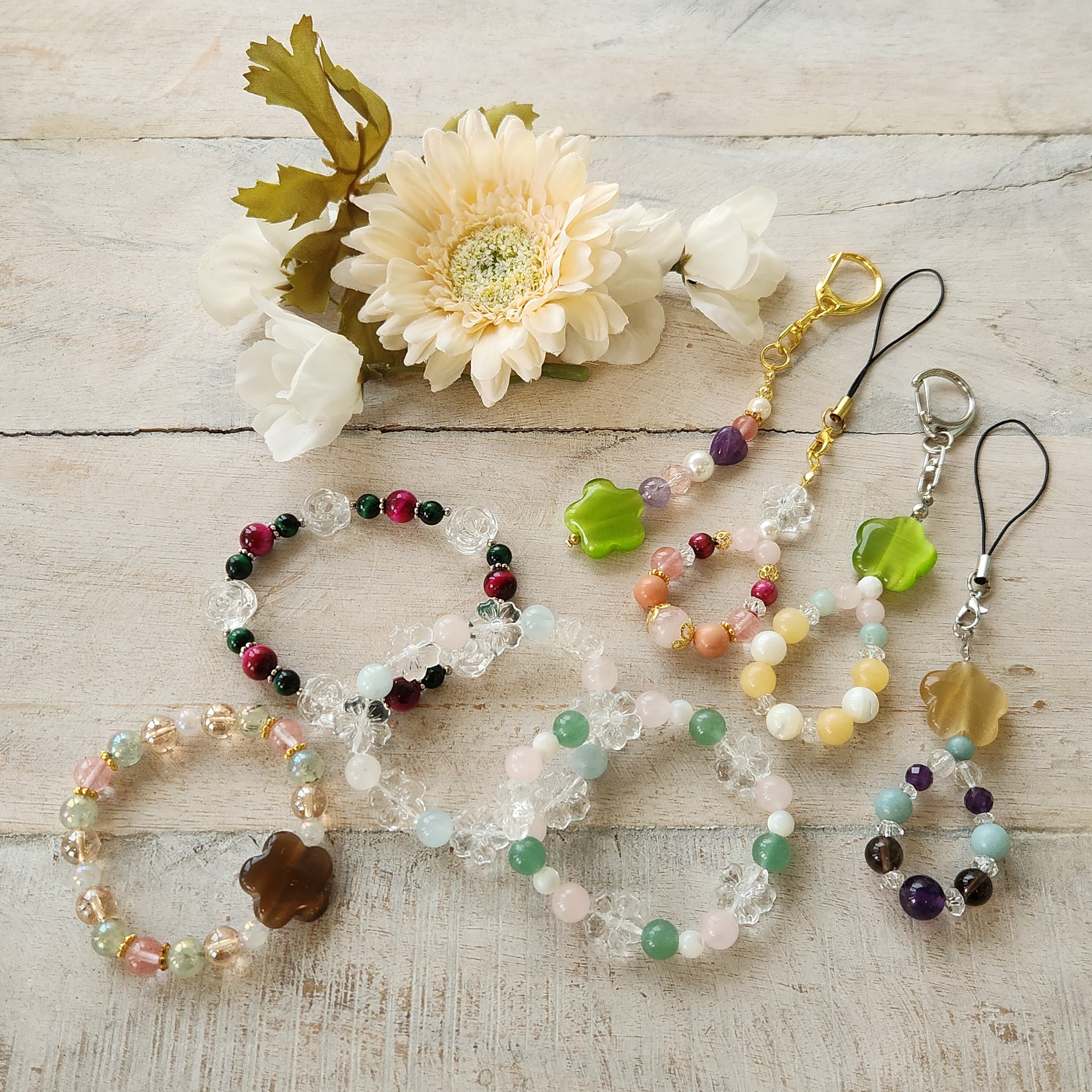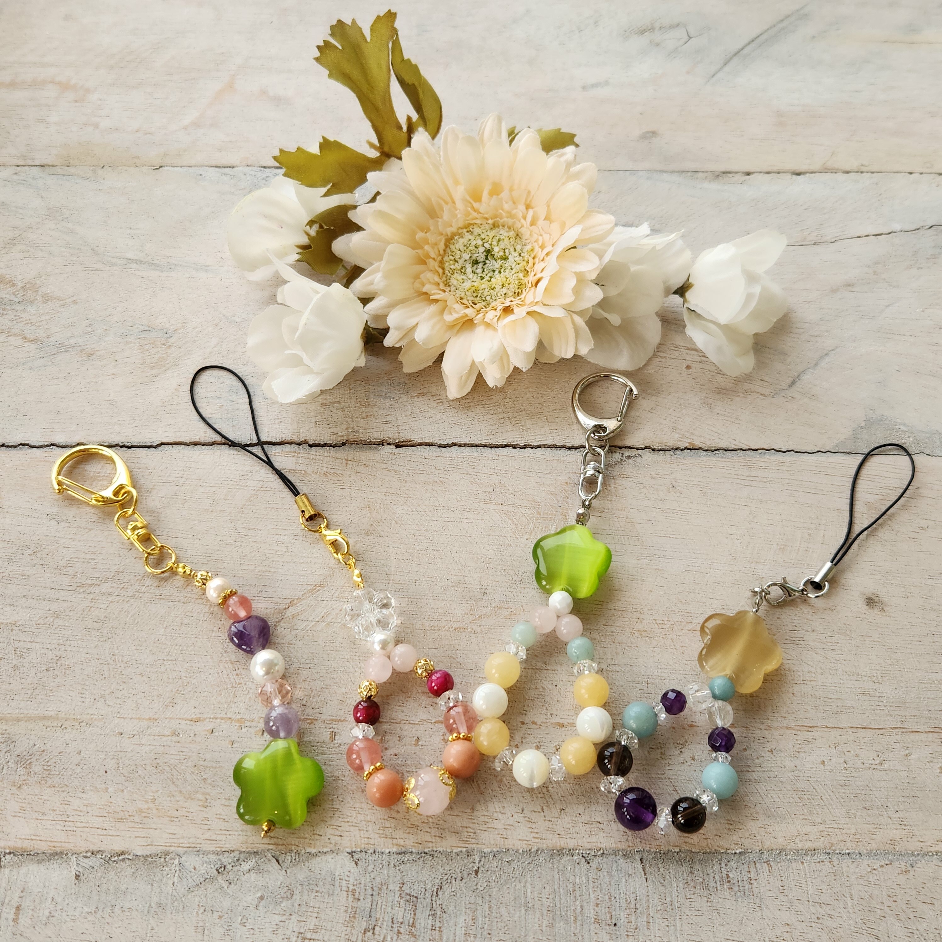お花の形のクリスタルクオーツやキャッツアイ☆